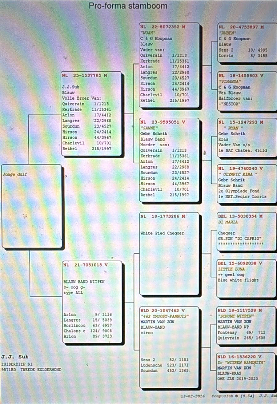Hier een bon van de topper van het Samenspel Leiden en Omstreken. Familie van de Kooy uit Voorhout zwaait al jaren lang de scepter op het vluchtprogramma. Ook nu weer in 2025 staan ze op de hoogste tree van het podium.